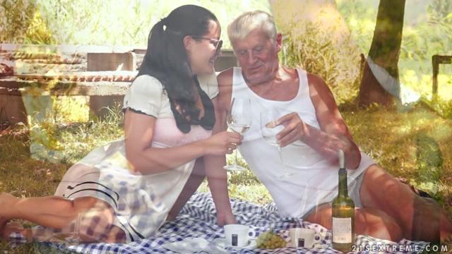 Очкастый дедушка так и хочет вставить член в свою 18 летнюю внучку